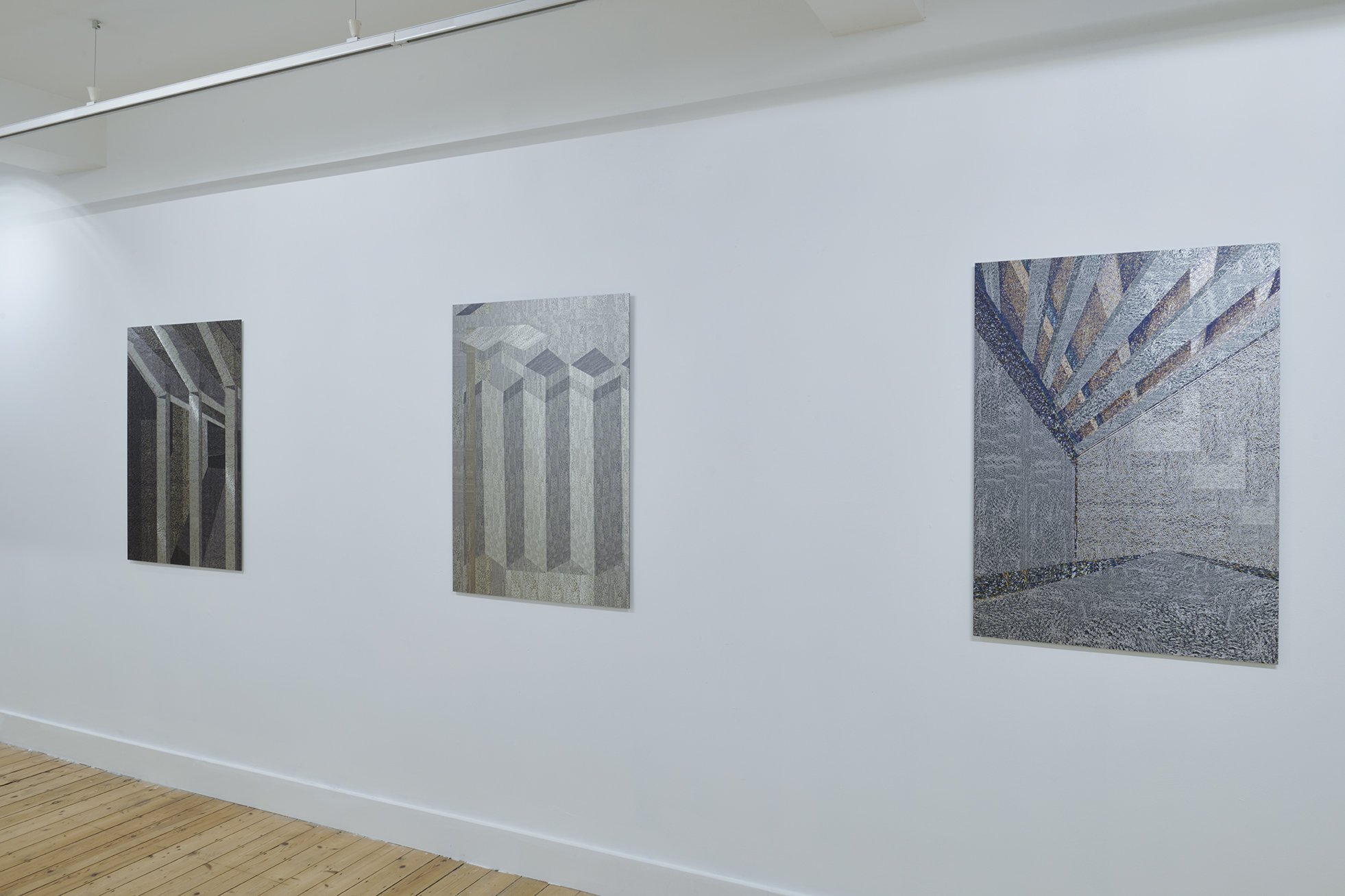 “I like to imagine the work as hovering somewhere in the realm of archaeological sci-fi, a kind of excavation of potentially lost futures. It’s the sort of space, which oscillates between two and three dimensions; fragments of things and some kind of feeling of texture or colour, which emerge out of barely remembered dreams. There is a kind of glimpse or sense of something tangible, structurally solid, yet on the point of collapse at the same time.”