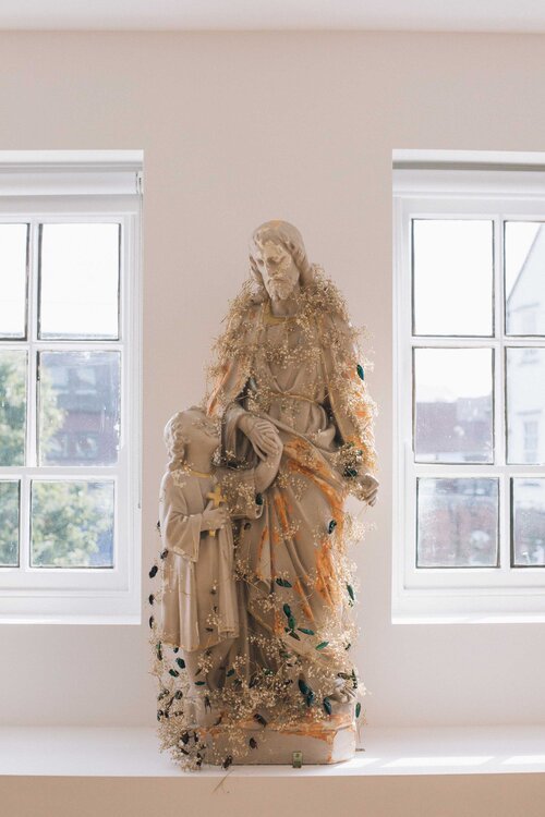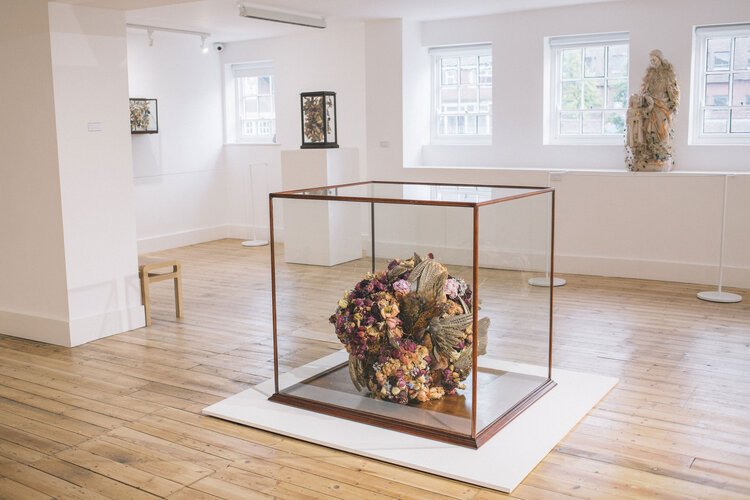 The large-scale sculptural installation created within the main Gallery responds organically to the architectural context of the space. Still Life incorporates dried flowers reworked from Law’s previous site-specific installations which she has created at locations around the world including The Yellow Flower (2014) in Nagasaki, The Grecian Garden (2015) in Athens, Flowers 2015: Outside In (2015) in New York and Garten (2016) in Berlin. Her largest installation to date, The Canopy (2016), is made up of over 150,000 flowers on permanent display in Melbourne. Law’s work has also been exhibited at UK institutions including the Garden Museum, the Royal Academy of Arts and the Victoria & Albert Museum.